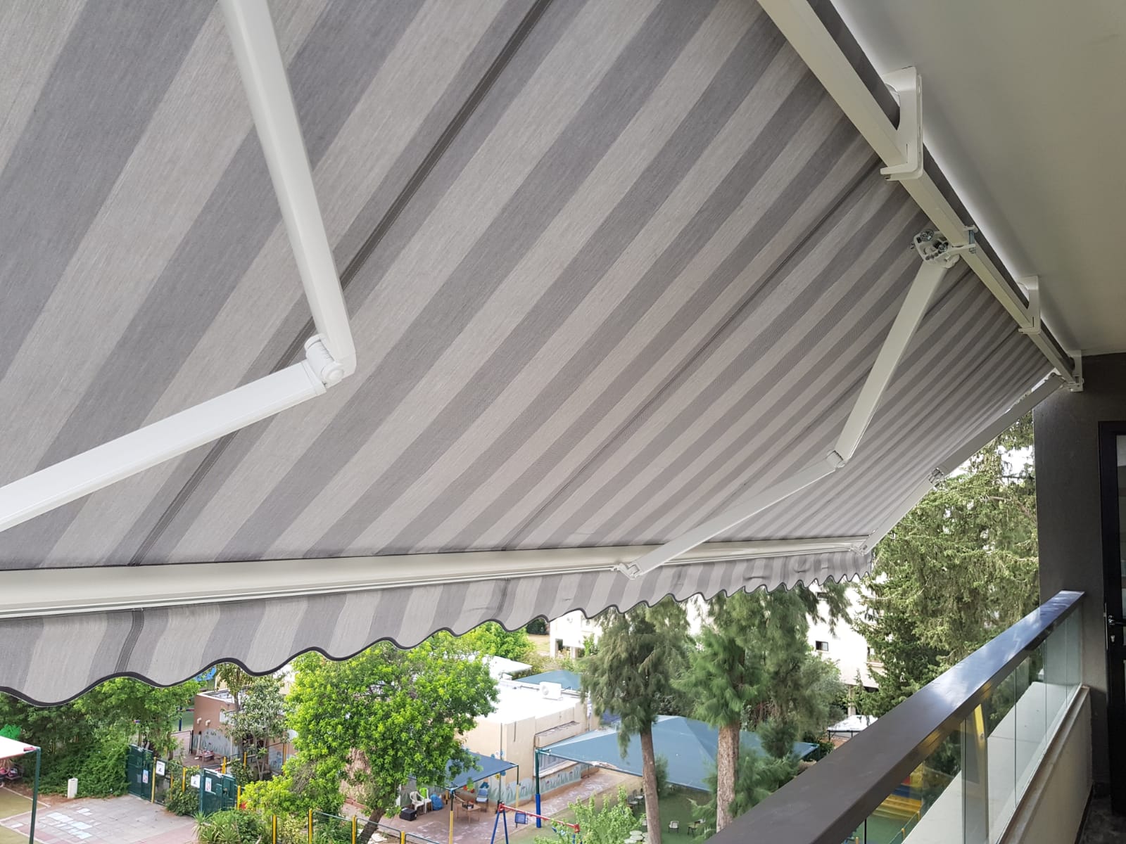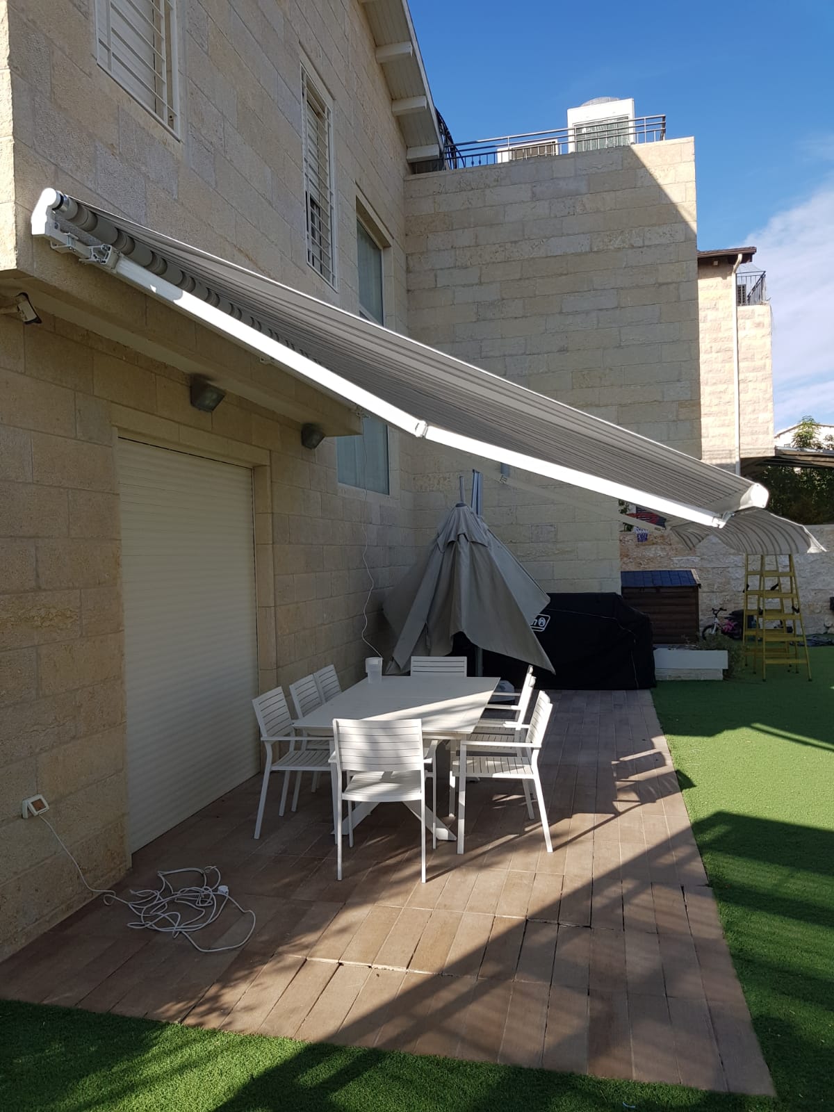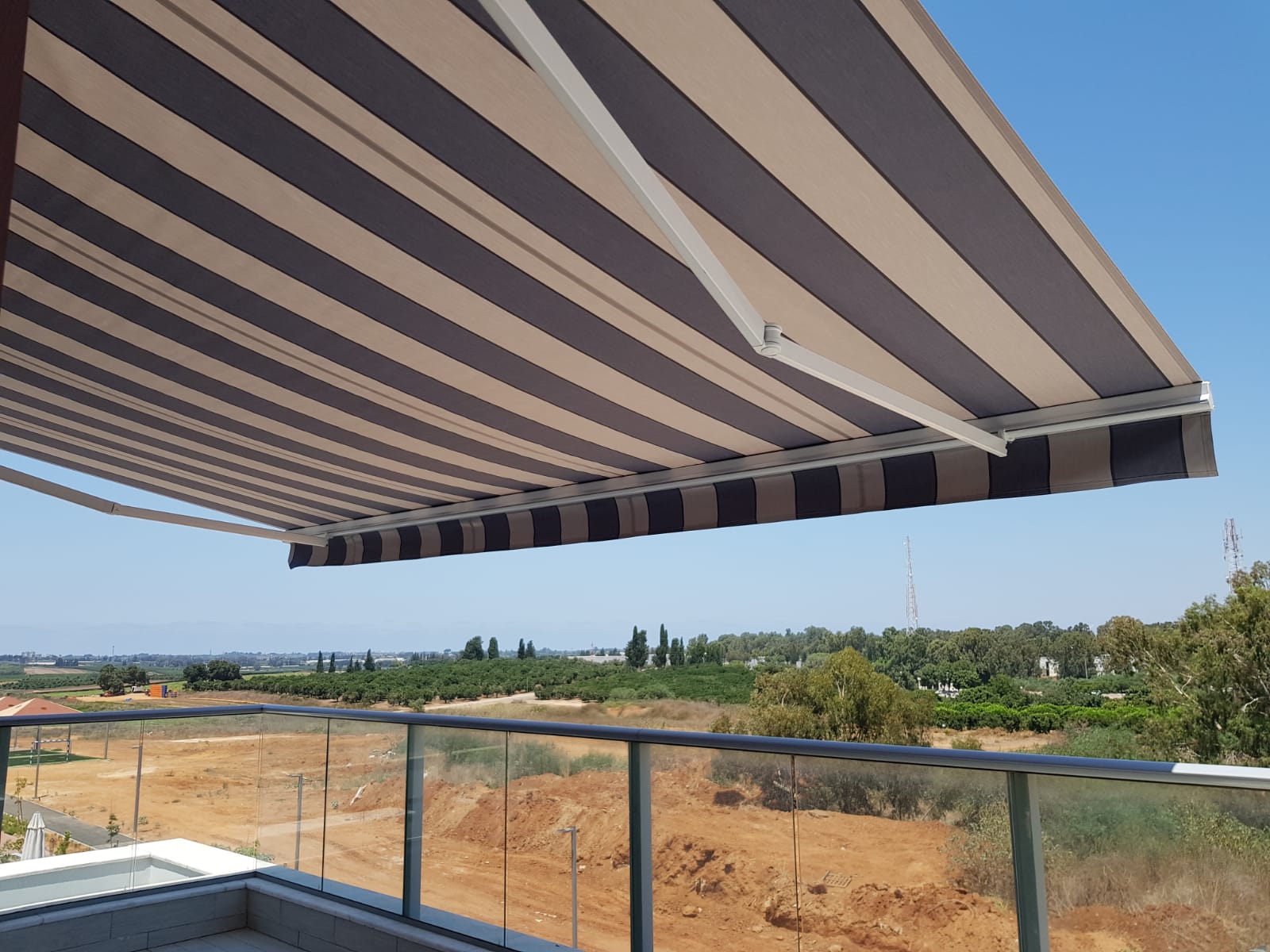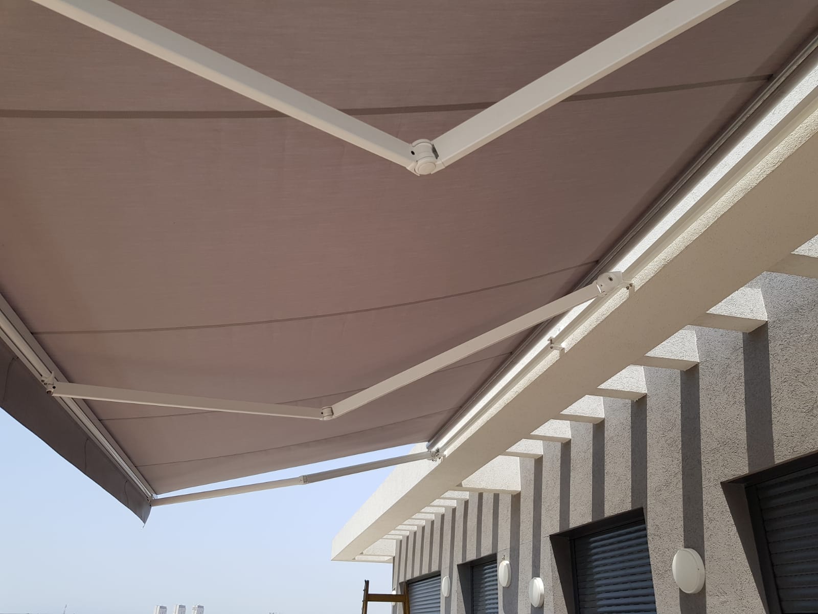 סוכך זרועות מבית היוצר “סככות דקל” עשוי מאלומניום אל חלד יוקרתי.