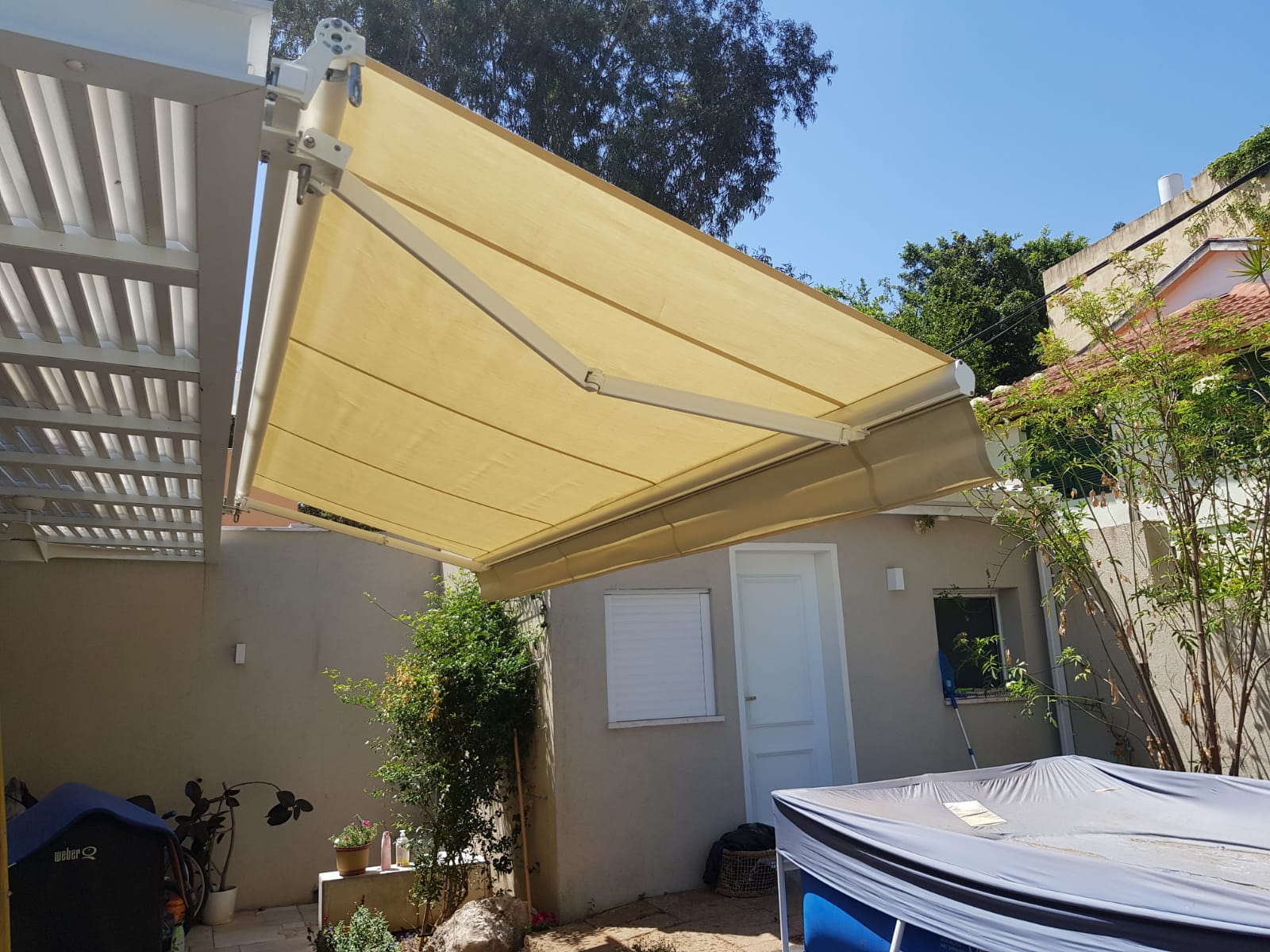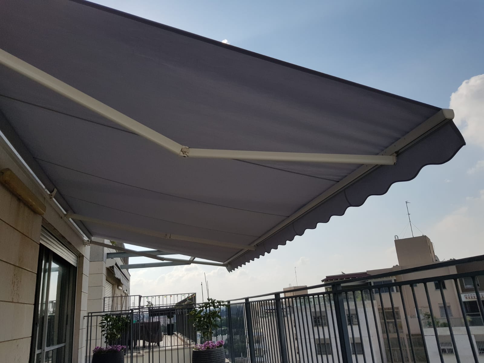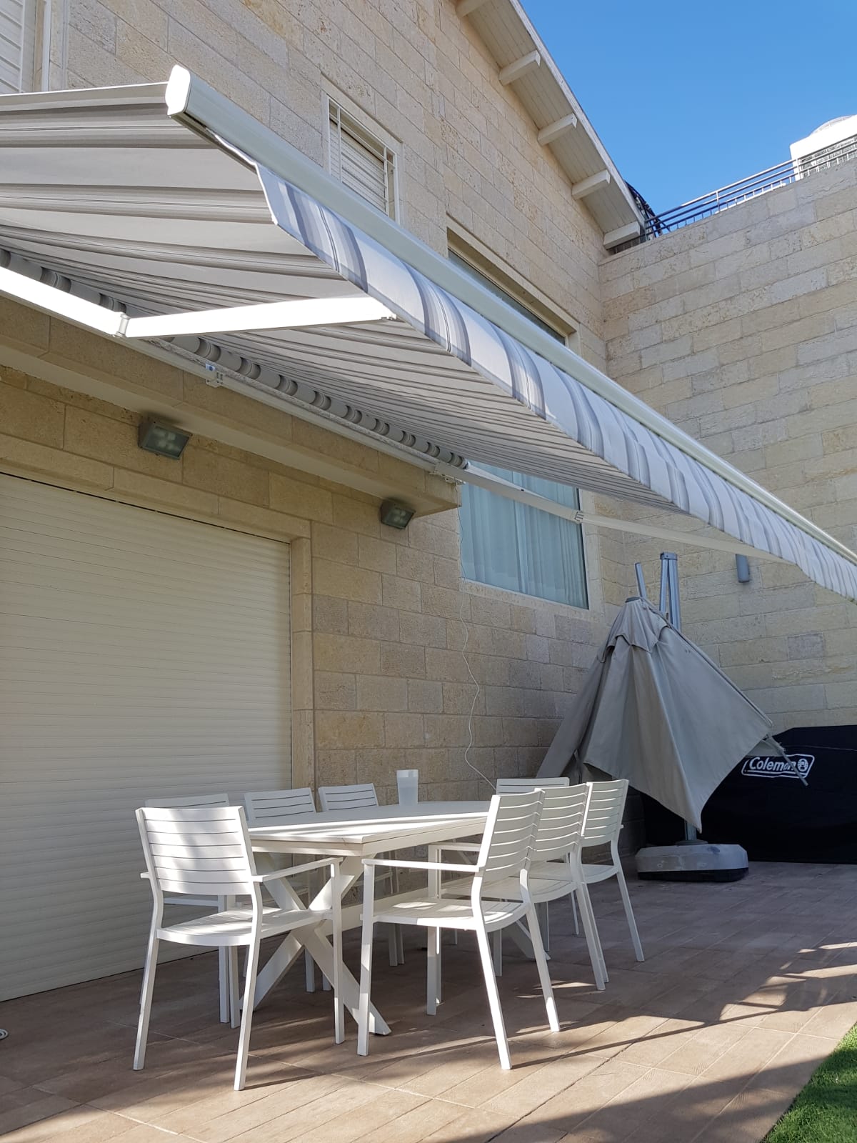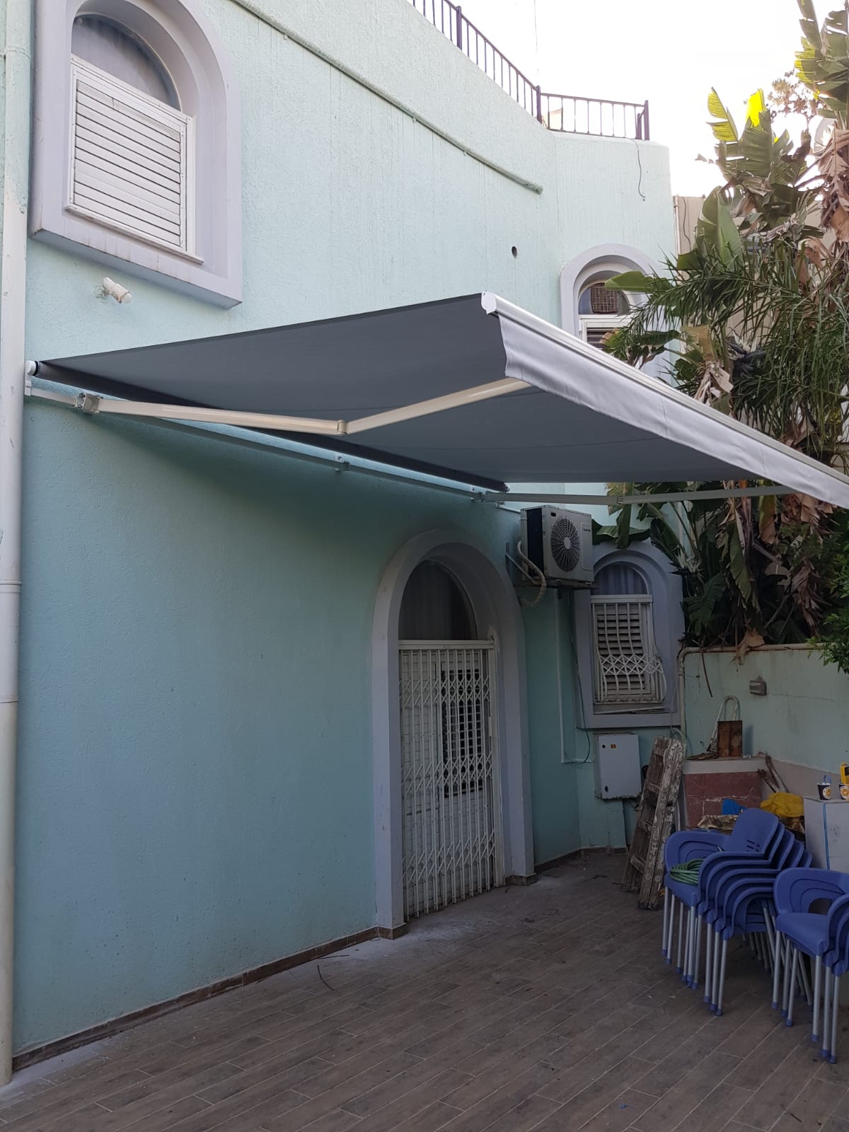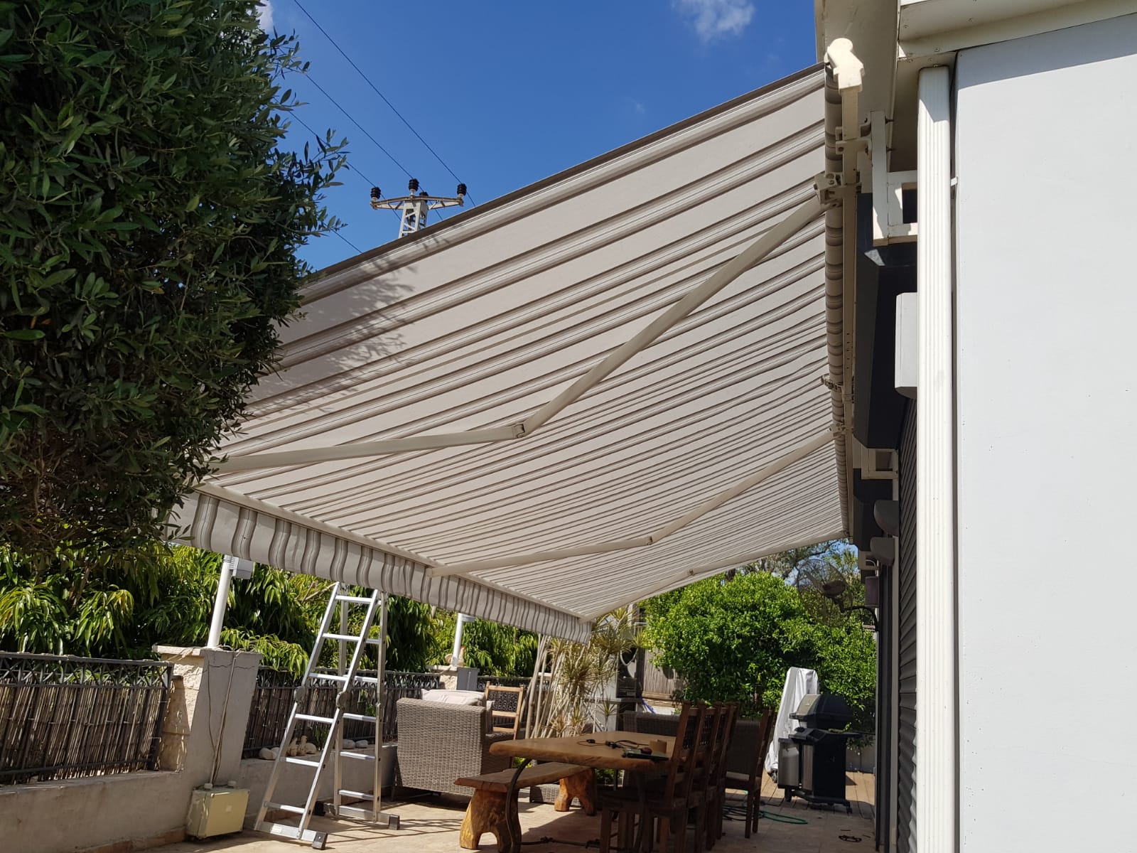סוכך זרועות מבית היוצר “סככות דקל” עשוי מאלומניום אל חלד יוקרתי.