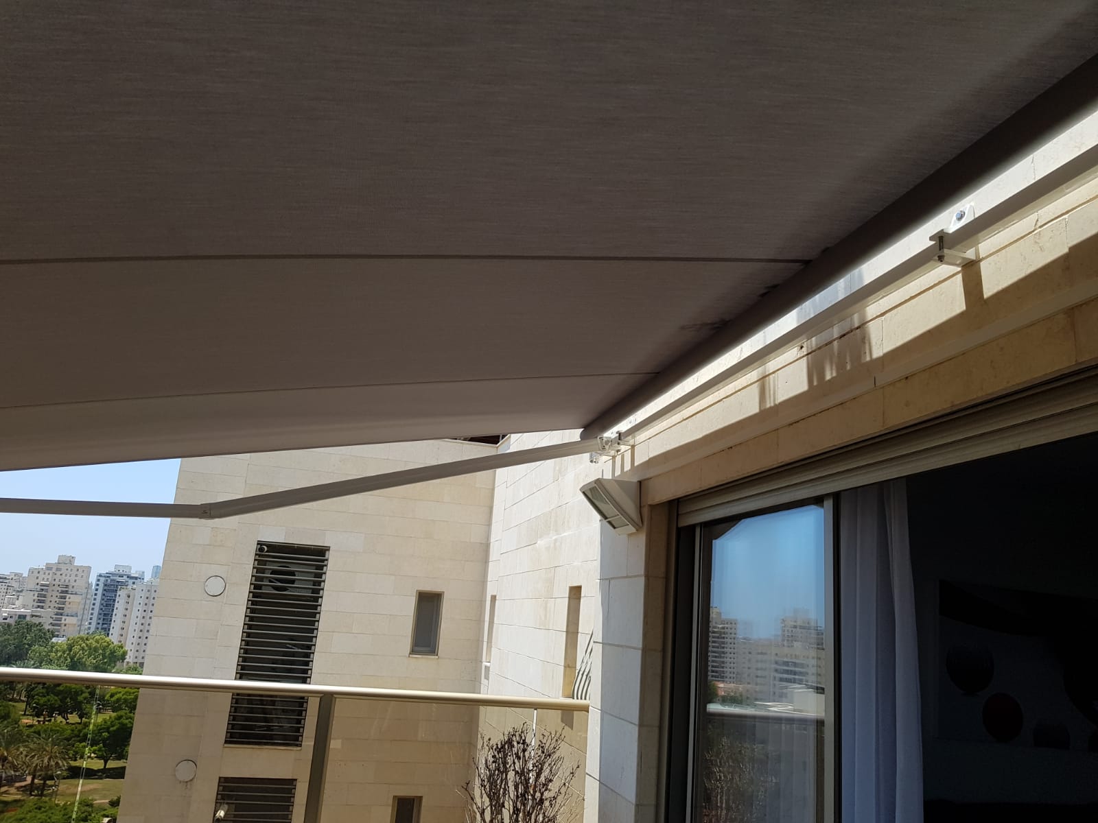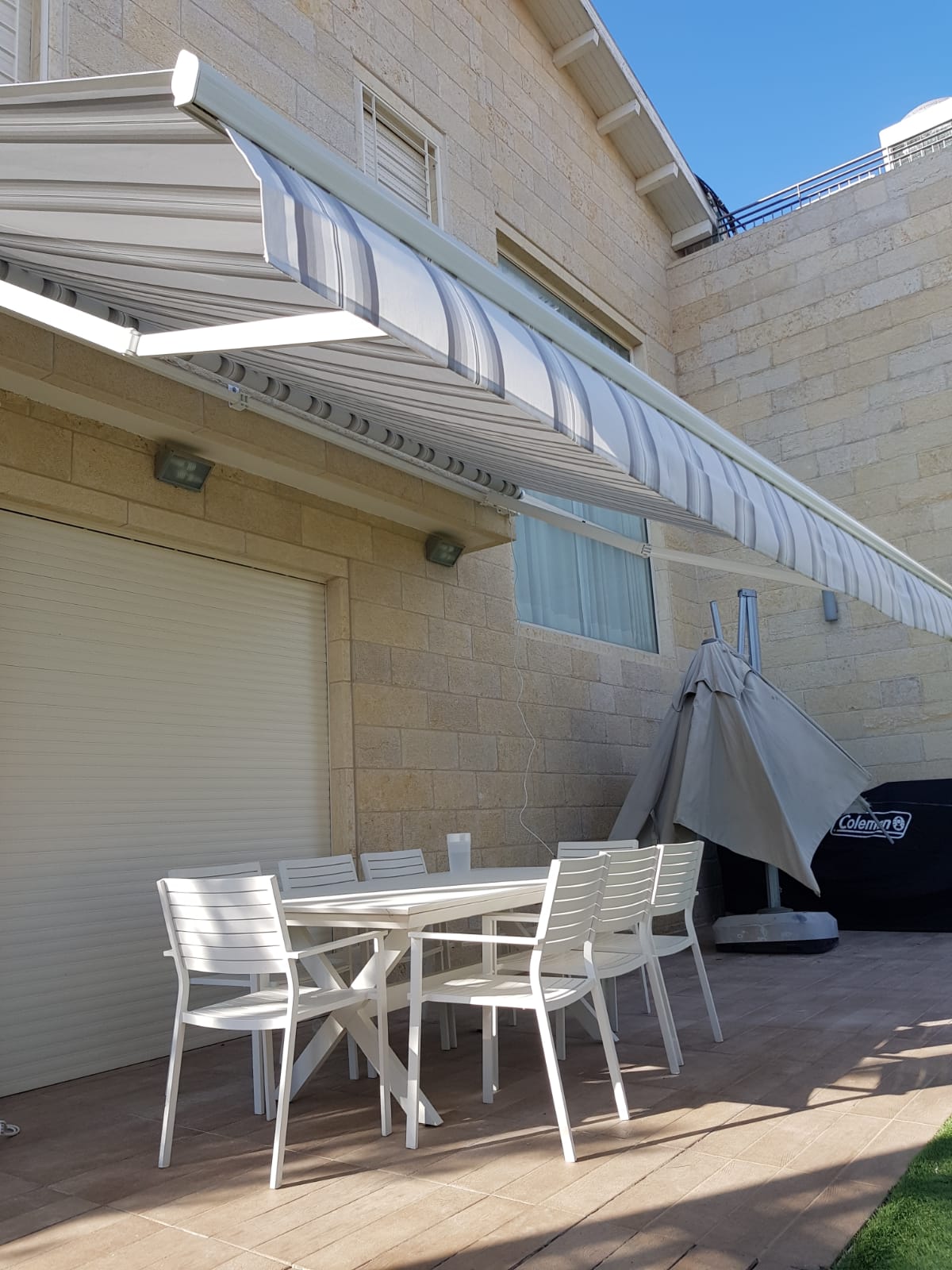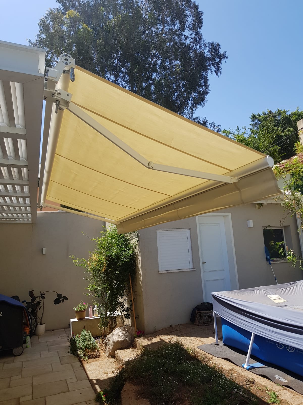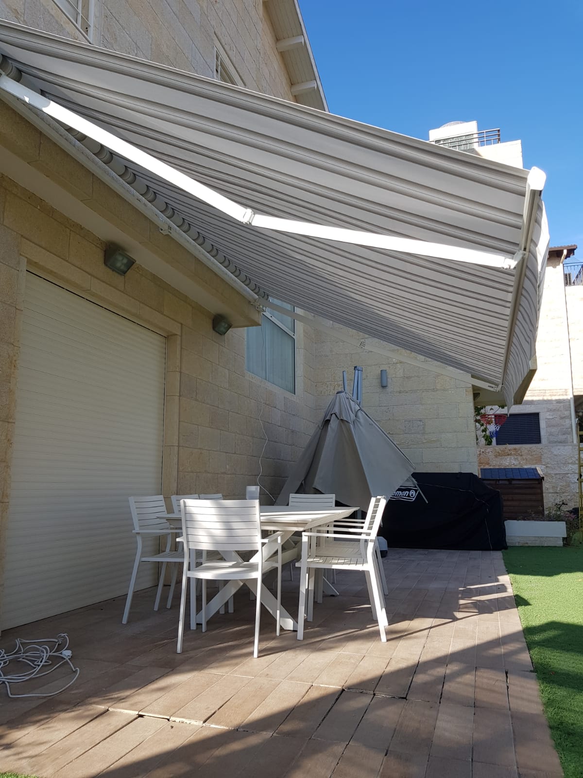 סוכך זרועות מבית היוצר “סככות דקל” עשוי מאלומניום אל חלד יוקרתי.