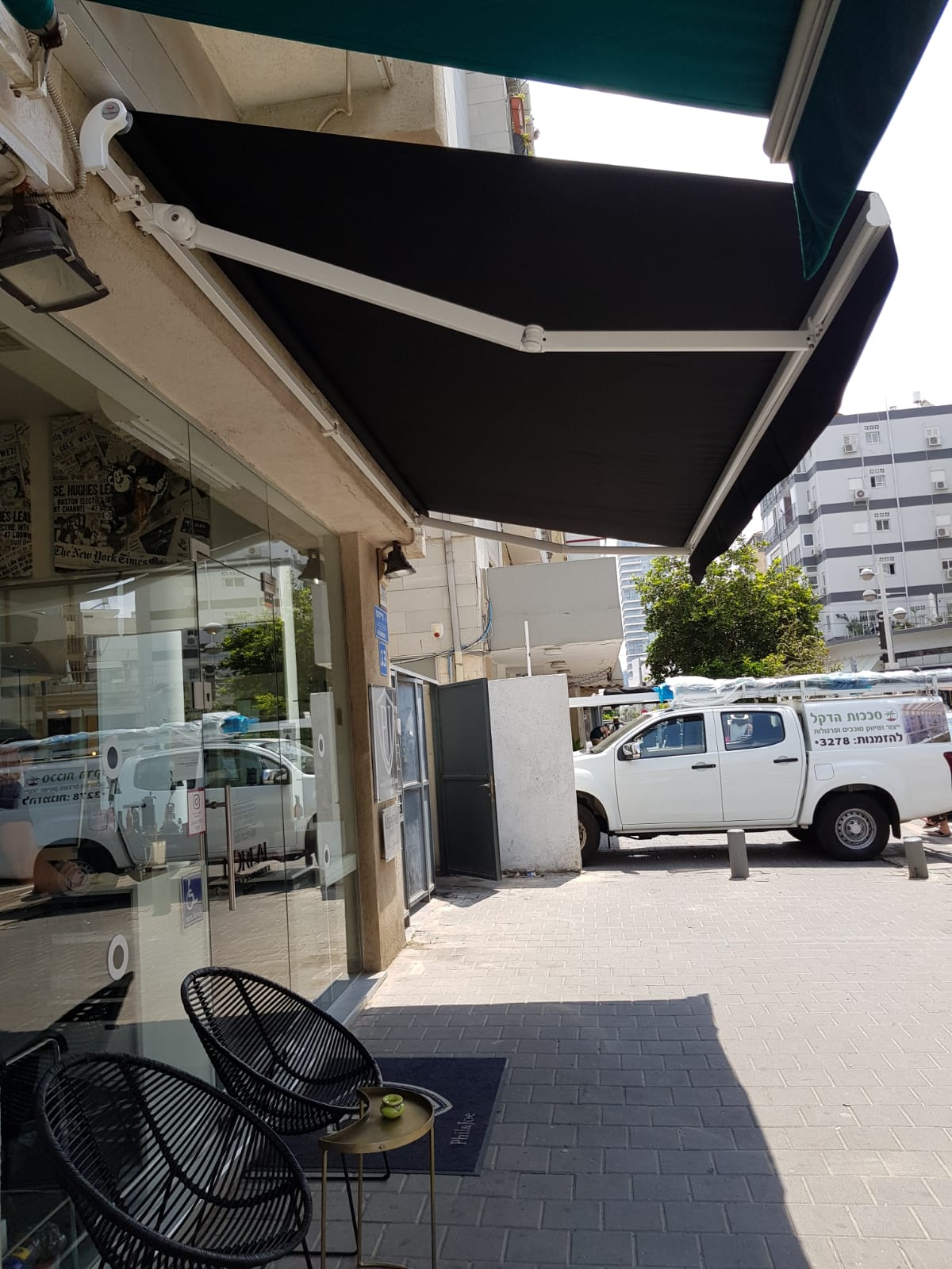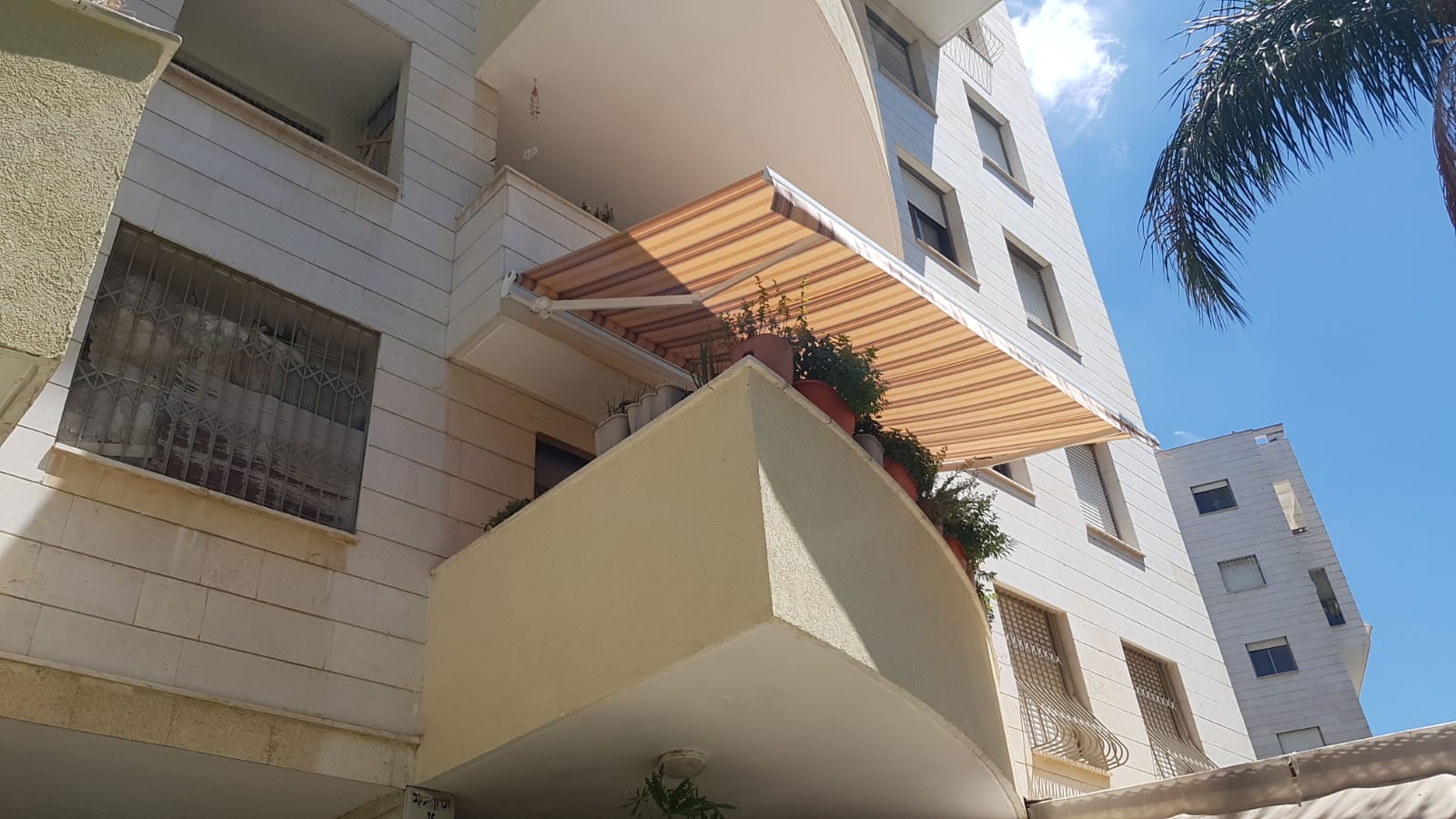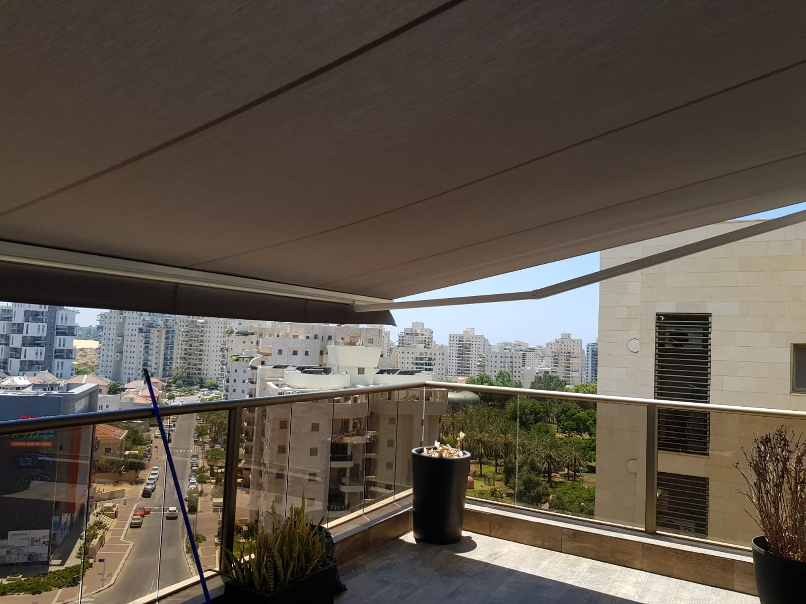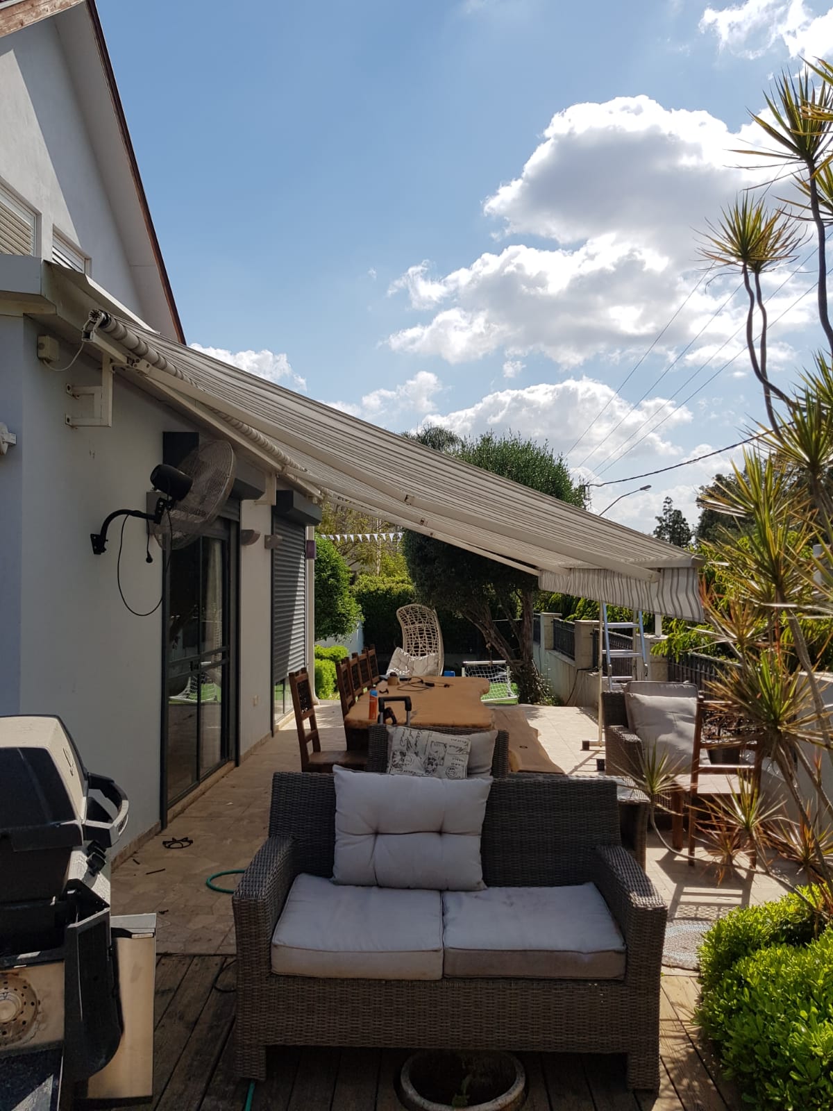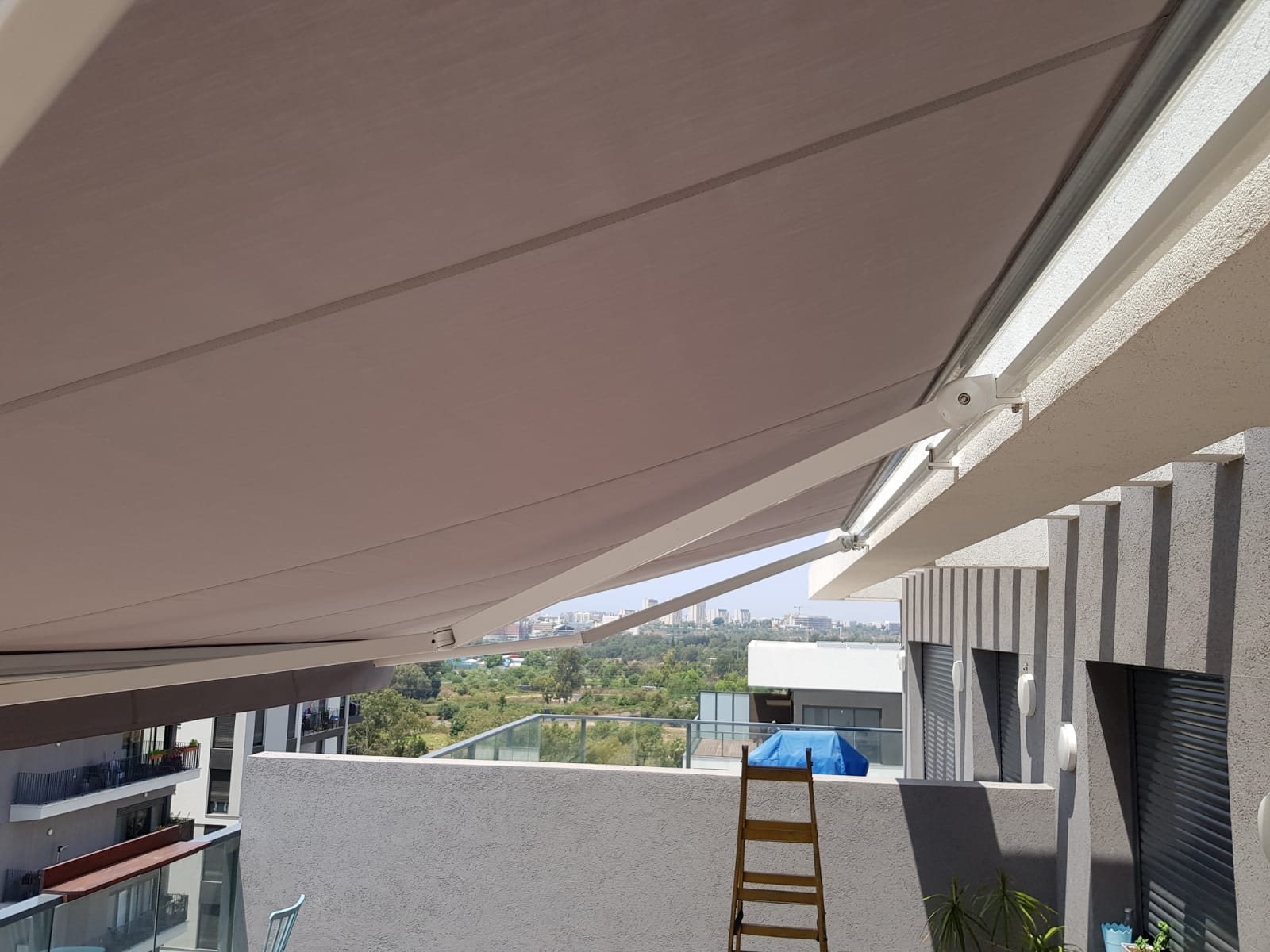 סוכך זרועות מבית היוצר “סככות דקל” עשוי מאלומניום אל חלד יוקרתי.