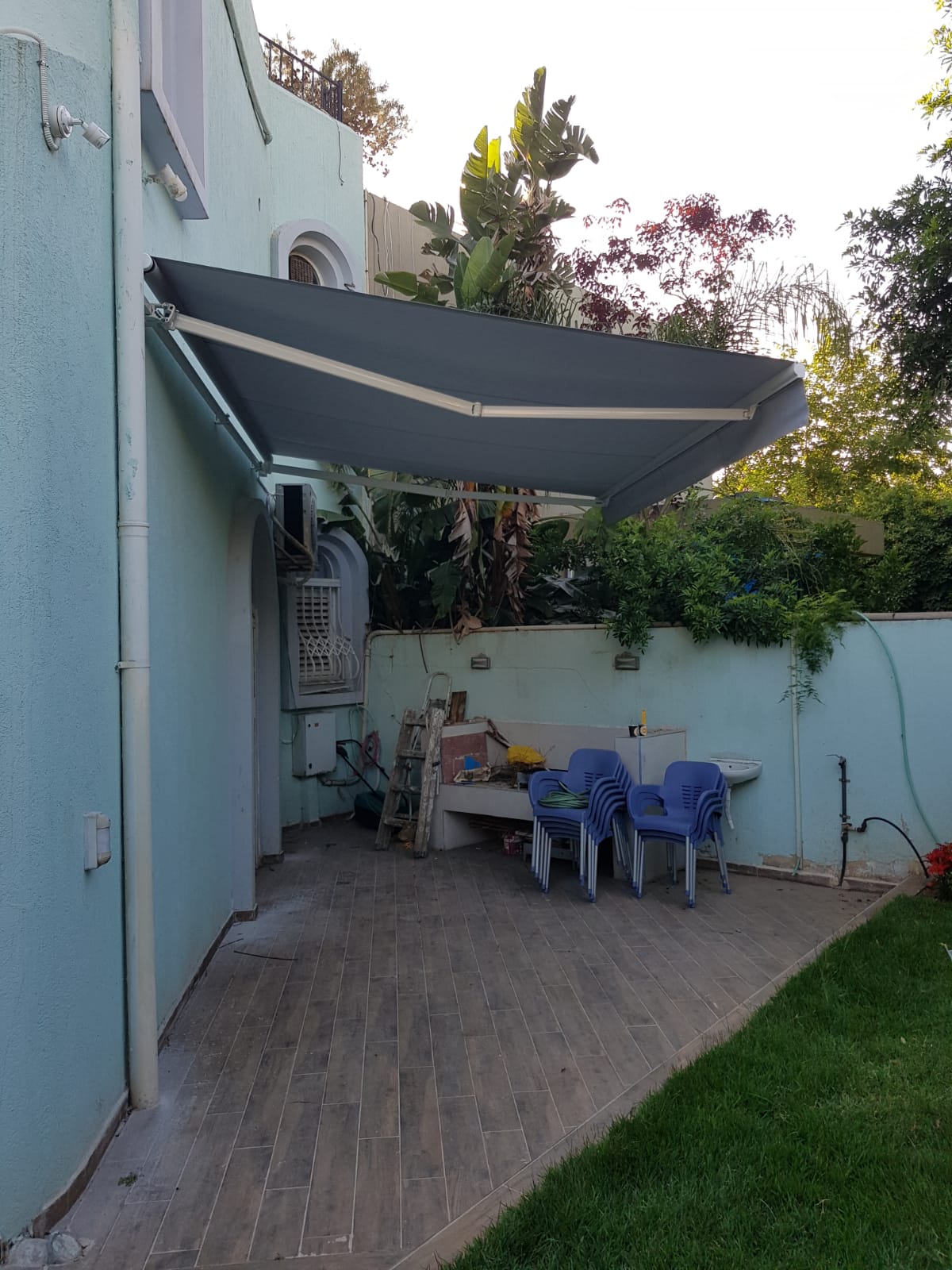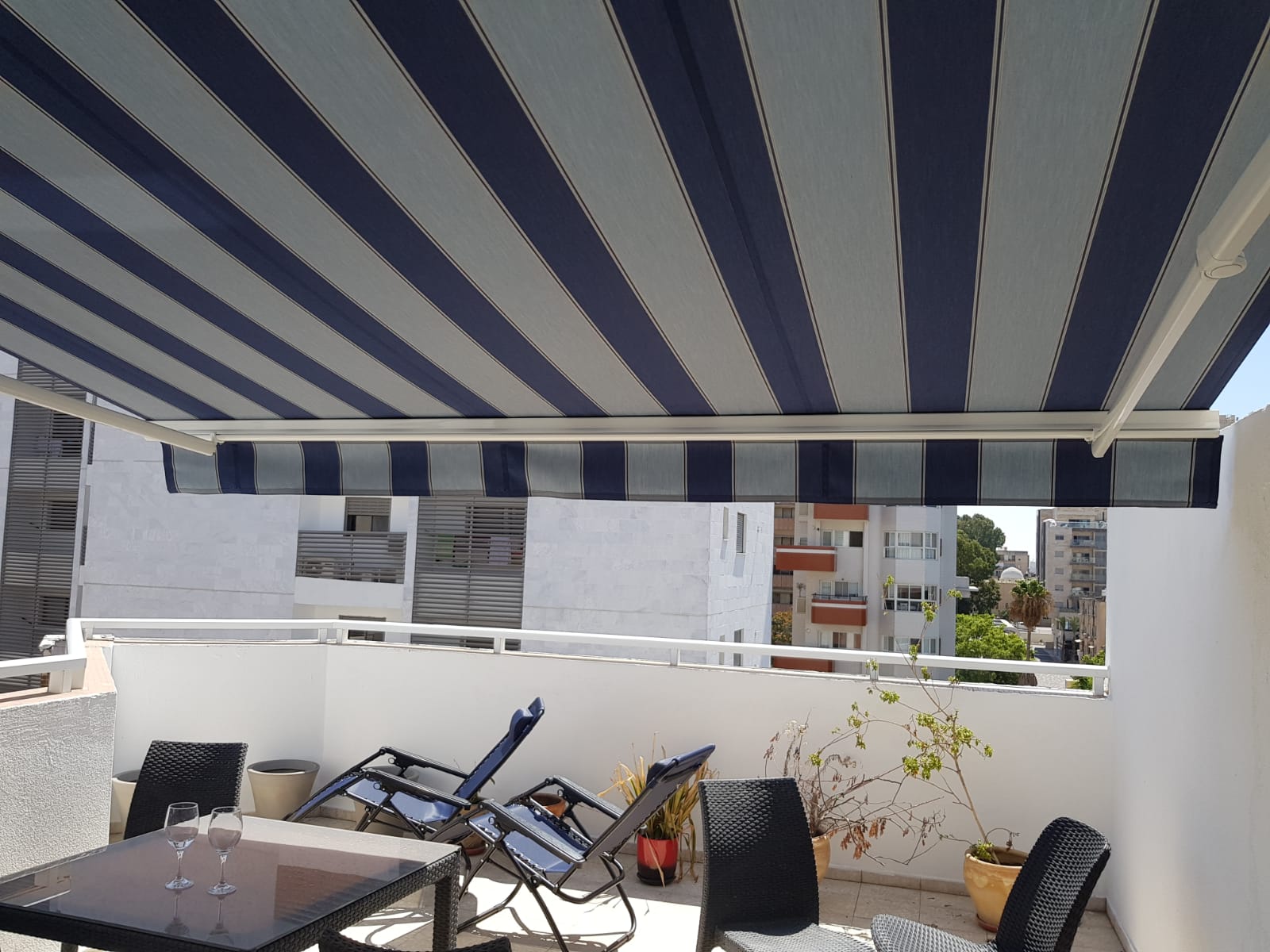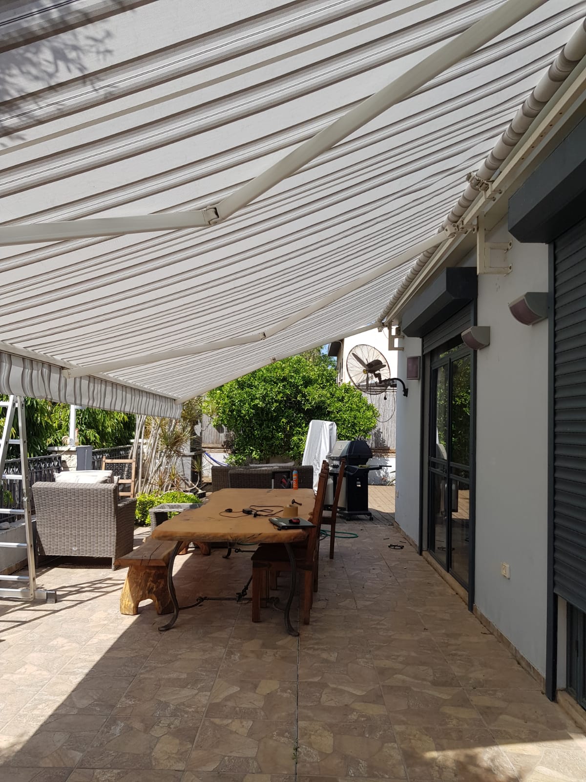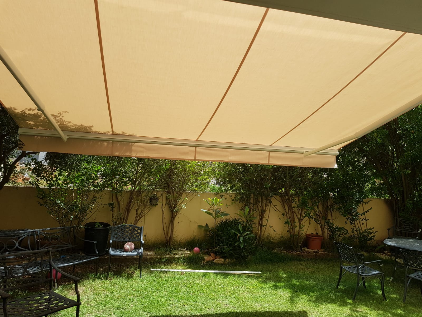 סוכך זרועות מבית היוצר “סככות דקל” עשוי מאלומניום אל חלד יוקרתי.